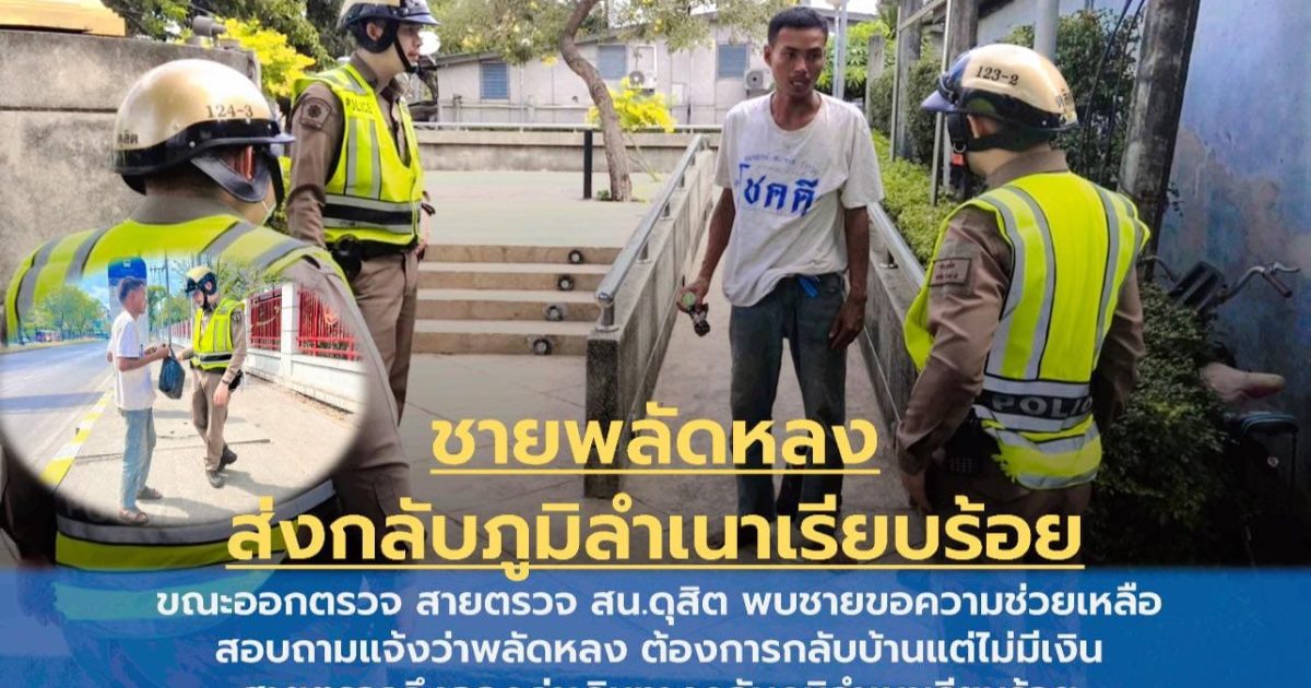 กลับบ้านเรารักรออยู่ 29 กุมภาพันธ์ 2024 โดย สถานีตำรวจนครบาลดุสิต / ข่าวประชาสัมพันธ์ #กลับบ้านเรารักรออยู่ขณะออกตรวจ สายตรวจ สน.ดุสิต พบชายขอความช่วยเหลือสอบถามแจ้งว่าพลัดหลง ต้องการกลับบ้านแต่ไม่มีเงินสายตรวจจึงออกค่าเดินทางกลับภูมิลำเนาเรียบร้อย จำนวนคนเข้าชม : 0