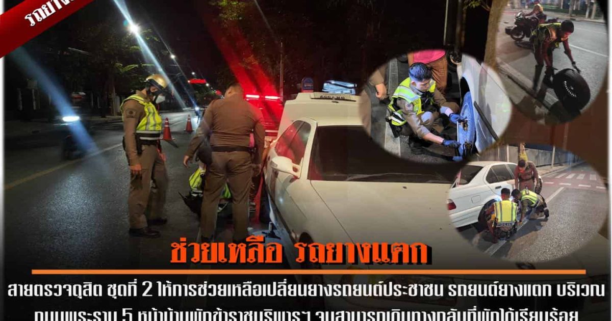 เวลาประมาณ 22.40 น. สายตรวจดุสิต ชุดที่ 2 ให้การช่วยเหลือเปลี่ยนยางรถยนต์ประชาชน รถยนต์ยางแตก บริเวณถนนพระราม 5 หน้าบ้านพักข้าราชบริพารฯ จนสามารถเดินทางกลับที่พักได้เรียบร้อย