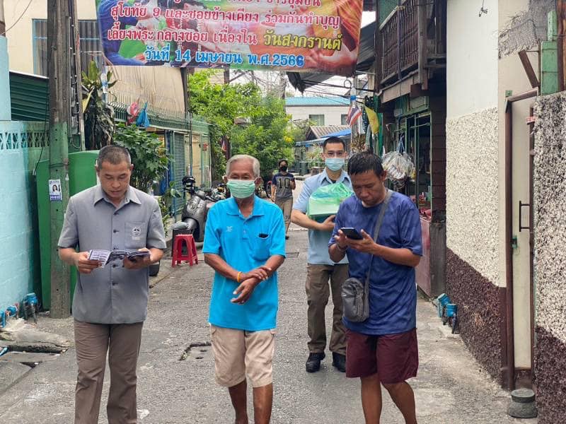 ตรวจเยี่ยมชุมชน x-ray ชุมชน บันทึกข้อตกลง MOUครัวเรือน พื้นที่ชุมชนสุโขทัย 9 แขวงสวนจิตรลดา เขตดุสิต กรุงเทพฯ เพื่อค้นหาผู้เสพ ผู้ใช้ยาเสพติด สำรวจข้อมูลประชากรในชุมชน พร้อมอธิบายเหตุผลและประโยชน์ที่จะได้รับจาการดำเนินการตามโครงการชุมชนยั่งยืนฯ