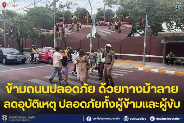สน.ดุสิต ประชาสัมพันธ์ประชาชน ให้ใช้ทางข้ามทางม้าลายในการข้ามถนน เพื่อลดความเสี่ยงในการเกิดอุบัติเหตุ