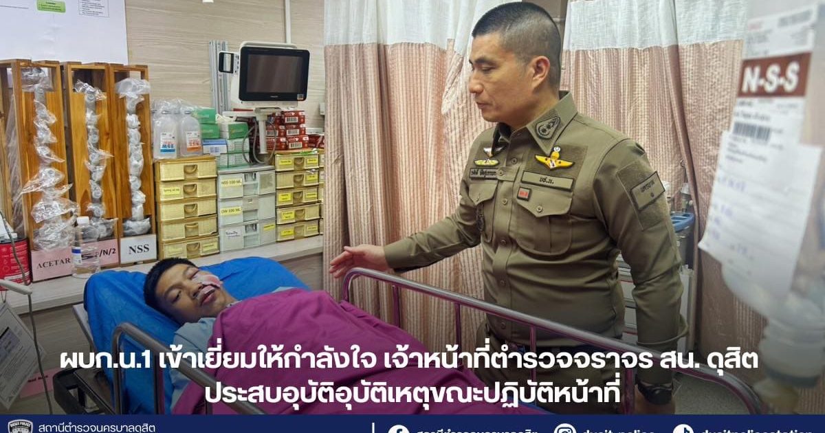 ผบก.น.1 เข้าเยี่ยมให้กำลังใจ เจ้าหน้าที่ตำรวจจราจรสน. ดุสิต ประสบอุบัติอุบัติเหตุขณะปฏิบัติหน้าที่