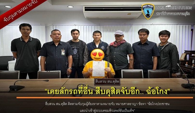 “เคยลักรถที่อื่น สืบดุสิตจับอีก.. ฉ้อโกง” รายงานผลการจับกุมผู้ต้องหาตามหมายจับ ดังนี้วันนี้ที่