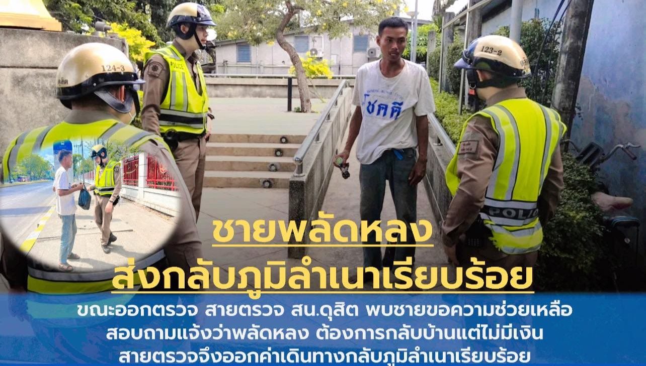#กลับบ้านเรารักรออยู่ขณะออกตรวจ สายตรวจ สน.ดุสิต พบชายขอความช่วยเหลือสอบถามแจ้งว่าพลัดหลง ต้องการกลั