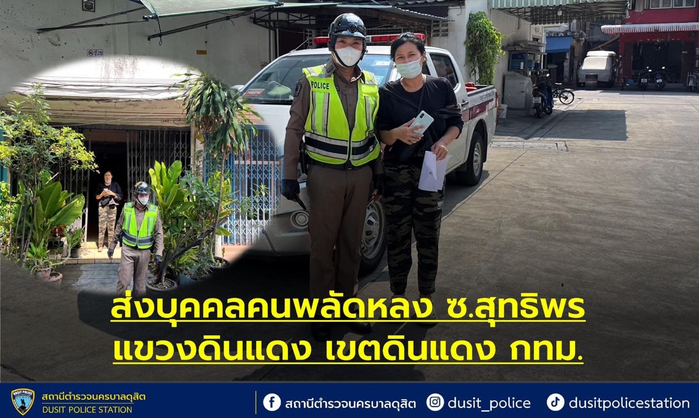 ส่งบุคคลพลัดหลงกลับบ้านหลงทางเสียเวลา หลงมาดุสิตได้ไงกลับบ้านนะ พี่ไปส่ง