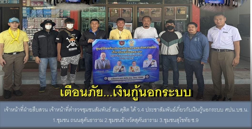 “เตือนภัยเงินกู้นอกระบบ” 29 พ.ค.67ดุสิต 4 ทีมงานสืบสวน,ตชส.ว.4 ประชาสัมพันธ์เกี่ยวกับเงิ