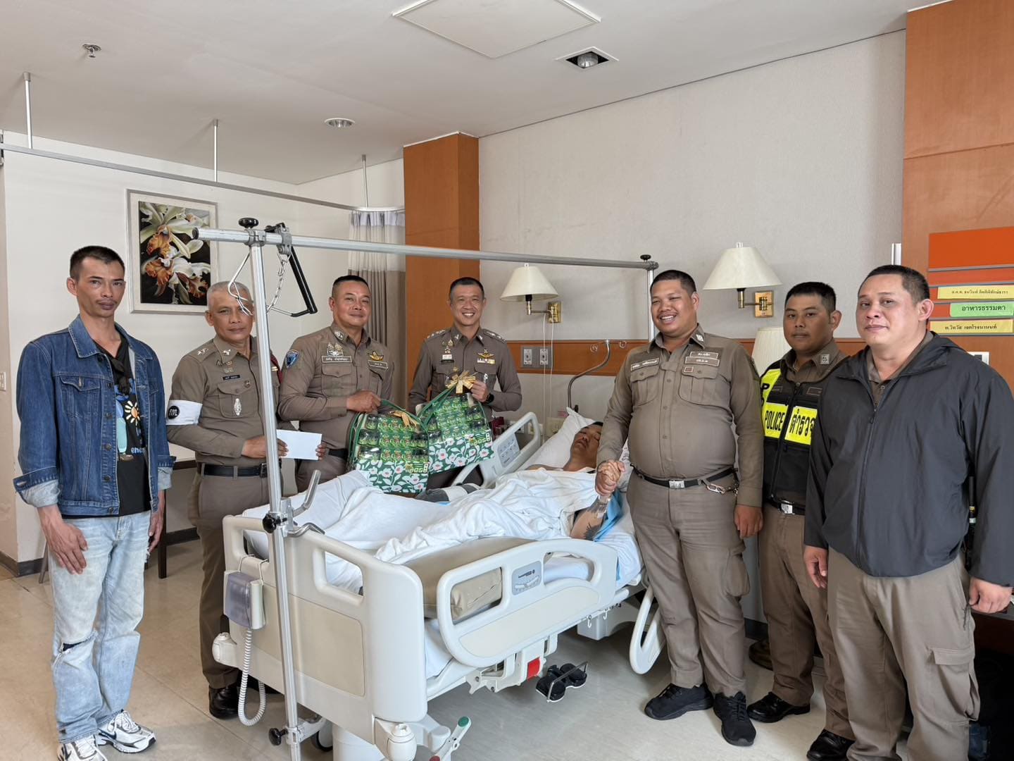 เยี่ยมอาการและมอบเงินและกระเช้าแก่เจ้าหน้าที่ตำรวจจราจร