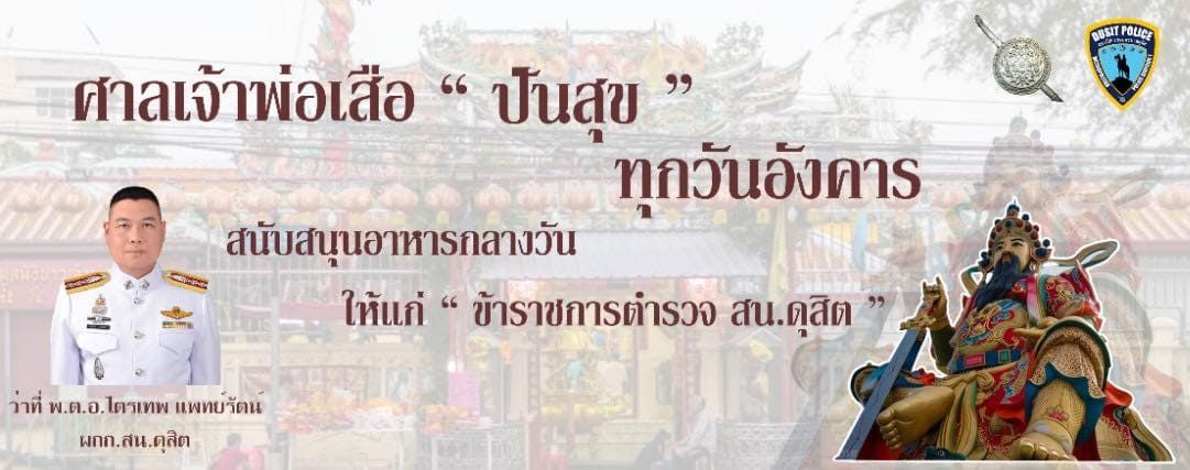 วันนี้ 7 ก.พ. 2566 เวลา 12.00 น. ว่าที่ พ.ต.อ.ไตรเทพ แพทย์รัตน์ ผกก.สน.ดุสิต พร้อมกำลัง ตำรวจชุมชนสั