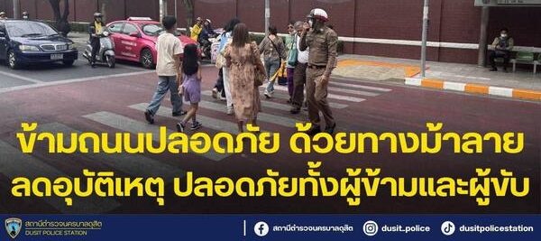สน.ดุสิต ประชาสัมพันธ์ประชาชน ให้ใช้ทางข้ามทางม้าลายในการข้ามถนน เพื่อลดความเสี่ยงในการเกิดอุบัติเหต